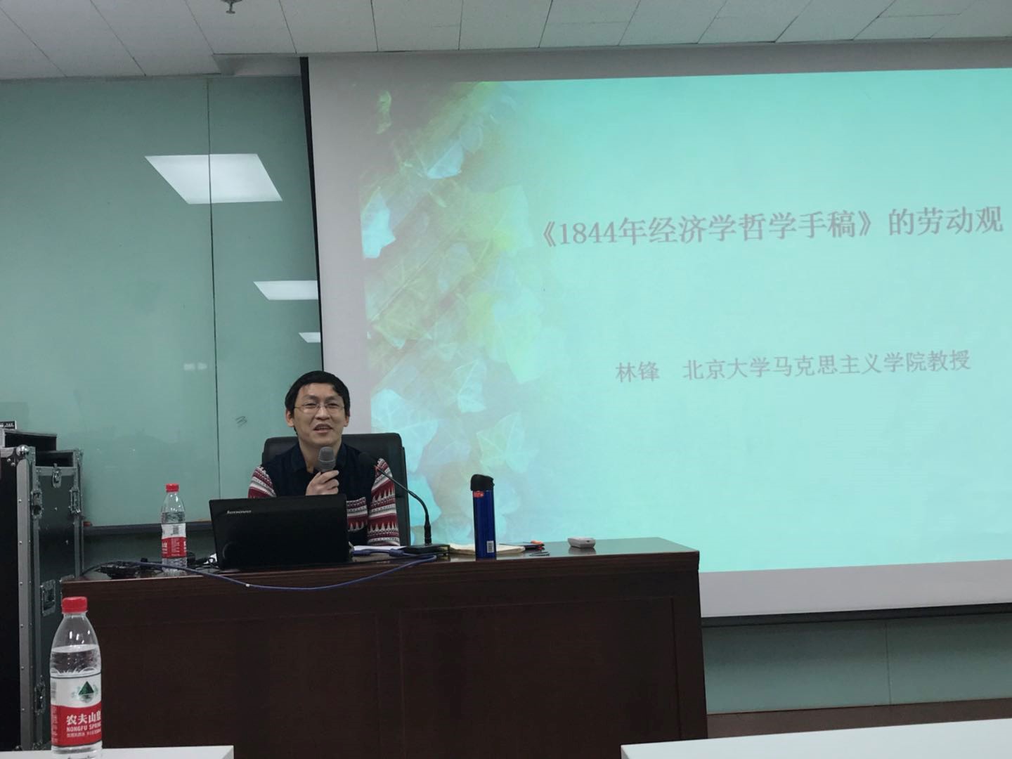 林锋教授主讲的题目则是“《1844年经济学哲学手稿》的劳动观”。长期以来,《1844年经济学哲学手稿》是一部颇具“争议性”的马克思的早期著作,《手稿》中的劳动观更是饱受争议和责难,它究竟是马克思主义性质的,还是非马克思主义性质的?林老师的讲座围绕这些问题阐述了自己的独特见解。一种流行见解认为:《手稿》的劳动观是“不成熟”甚至“不科学”的,带有“抽象性”与“理想化”色彩,马克思当时所理解的“劳动”,主要是一种理想化的、道德“应然”意义上的抽象劳动形式,与现实劳动、具体劳动是截然有别的;《手稿》用“自由自觉的劳动”这种抽象的、理想化的劳动来批判私有制下的现实的、具体的劳动,质疑后者存在的合理性,这充分表明了《手稿》劳动观的“不成熟性”、“不科学性”。林老师从两个方面对上述观点提出了质疑,进行了回应。一是对《手稿》的“自由自觉劳动”的辨析。林老师指出,《手稿》的“自由自觉劳动”这一提法有其具体的语境,马克思是在分析人与动物的生命活动的差别时,在相对的意义上、有针对性地讲劳动的“自由自觉”的,马克思并未抽象地、无条件地谈论或夸大人类劳动的“自由自觉”特性。“自由自觉劳动”不仅仅是马克思当时关于人类劳动的一种理想,它还是一种“曾在人类史前时期真实存在的具体劳动形式”。二是林老师认为马克思在《手稿》中并不是用“抽象”的、“理想化”的“自由自觉劳动”伦理地批判私有制条件下现实的、具体的劳动。理由有三:首先,将“自由自觉劳动”定性为“抽象的、理想化的”劳动形式是不妥的;其次,《手稿》用关于人类劳动的理想来批判私有制社会中人类劳动的现状,谴责其“非正义性”,这并无不妥之处,并不构成“唯心主义”;最后,《手稿》并未对私有制社会的现实劳动进行单纯的道德批判或加以简单否定,而是采取“一分为二”的辩证科学态度,在批判其“不正义性”的同时,也充分肯定了其历史功绩,马克思所作的绝非单纯的“道德批判”。林老师认为,通过澄清这些基本事实,有助于我们科学评估《手稿》及其劳动观的哲学价值与历史地位。