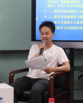 谢超林的主讲题目是“西方马克思主义意识形态话语权理论的历史演变”。他认为,意识形态是马克思主义理论中一个极其复杂而又十分重要的范畴,意识形态的相关理论构成了唯物史观的重要内容。通过对马克思主义意识形态话语权理论的梳理,能够帮助我们澄清意识形态的科学内涵,对于在新的历史时期如何应对“去意识形态化”和“泛意识形态化”两种极端倾向,更好地坚持马克思主义在意识形态领域的指导地位,具有十分重要的理论和现实意义。他主要阐述了四个方面:一是大众对意识形态内涵的“三个误解”,即“空论”、“虚幻”和“洗脑”;二是论述了意识形态虚假性与服务性的辩证关系;三是介绍了西方马克思主义意识形态话语权产生的历史背景和主要论点,并着重阐释了其代表人物卢卡奇的“物化”理论、葛兰西的文化领导权理论、阿尔都塞的意识形态国家机器理论等;四是对西方马克思主义意识形态话语权理论作了简要评析,认为意识形态并不是供社会成员自由选择的,但意识形态话语权的获得又必须是通过无意识的、软性的方式为社会成员所接受。
