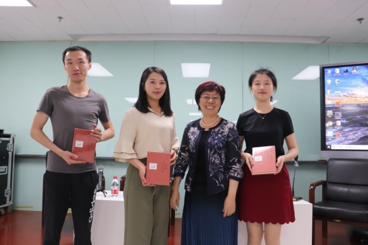 公司党委书记孙蚌珠教授参加了沙龙,并分别赠予三位毕业生《燕园文物、古迹与历史》一书作为纪念,并合影留念。