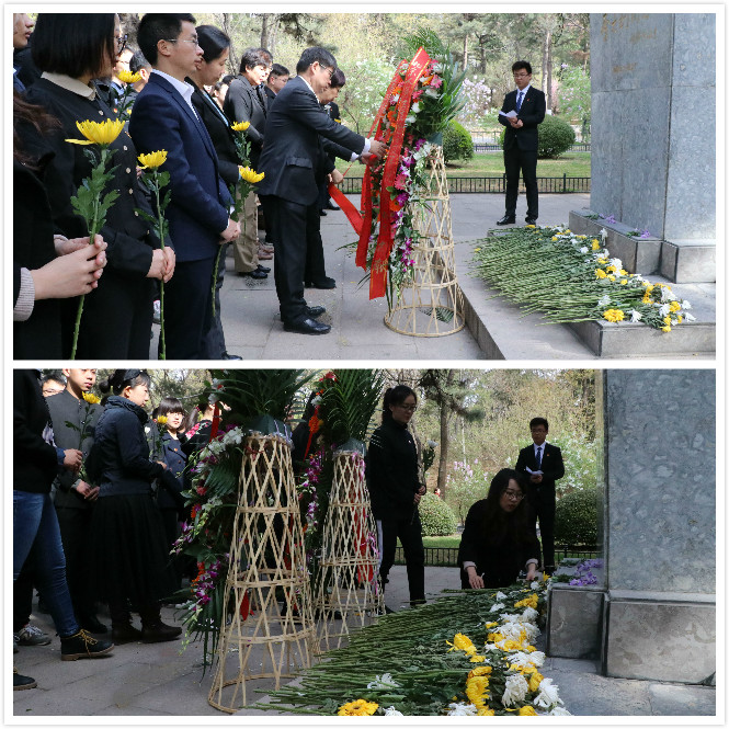 随后,员工代表向李大钊同志塑像敬献花篮,参加活动的全体人员向李大钊同志塑像行三鞠躬礼,并依次敬献鲜花、瞻仰塑像。