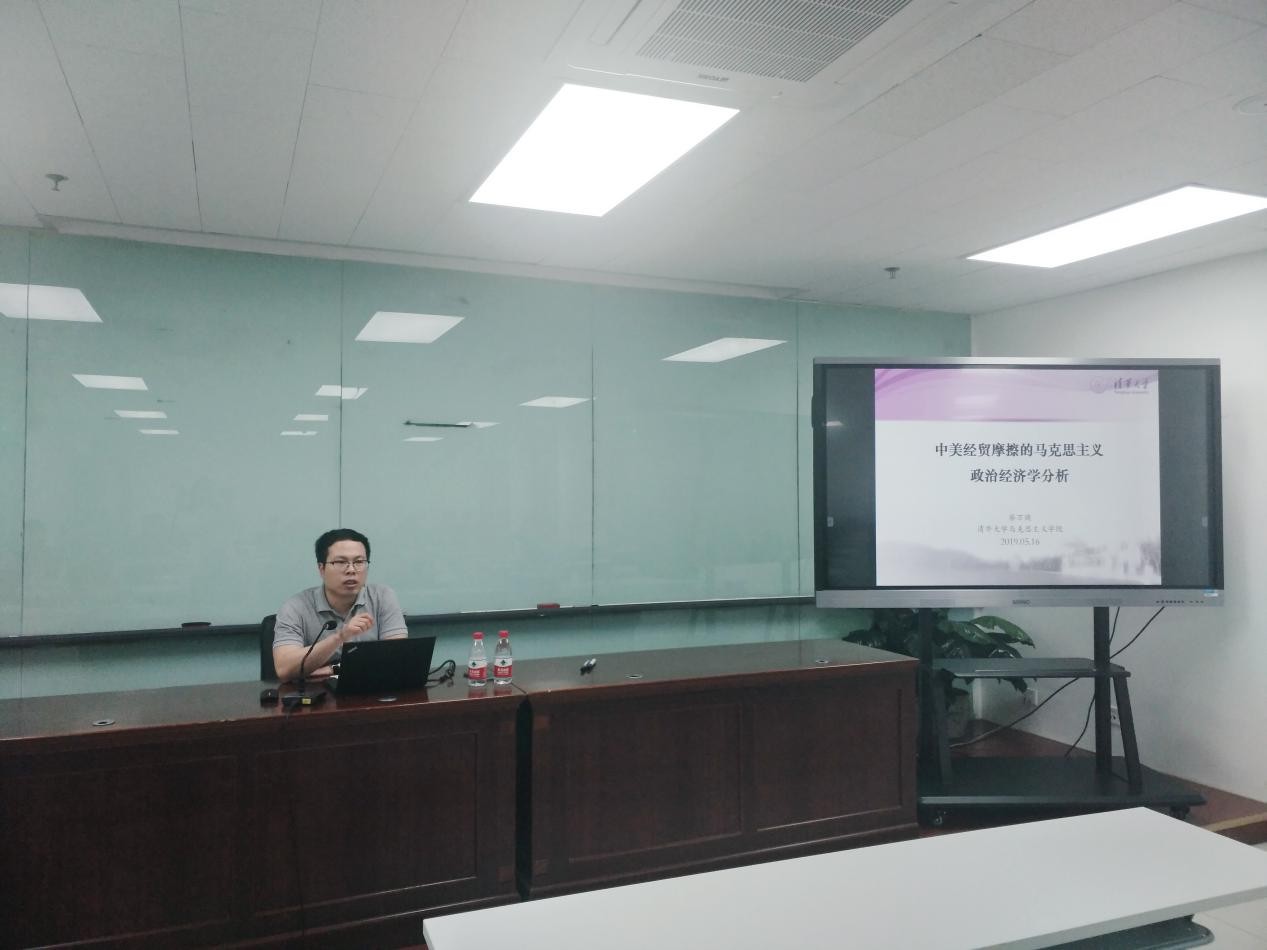 蔡万焕副教授的讲座主题是“中美贸易摩擦的马克思主义政治经济学分析”。他指出美国认为中美贸易存在巨大逆差的原因在于中国实行国家资本主义以及窃取美国知识产权的观点是不正确的,中美贸易存在逆差的根本原因在于美国自身的经济结构。20世纪70年代以来,美国宏观层面上出现金融资本相对独立膨胀,金融业在国家的产业结构中比重越来越大。这导致美国的经济结构发生变化,一方面美国经济的增长主要靠私人消费来拉动,经济增长不可持续;另一方面随着经济的金融化和虚拟化,美国经济出现了实体产业空心化。他认为需要区别商品流通与资本流通的区别,综合美国企业对外投资、服务贸易和货物贸易等情况,美国仍然处于中心国家的地位,运用资本获得其他国家大量的剩余价值。他还认为从经济结构调整的角度来看中美经贸摩擦,中美经贸摩擦是美国新自由主义的表现。美国完全可以不采取加征关税,可以放松对华出口管制减少对华贸易逆差。目前美国存在诸多矛盾,尤其是国内贫富差距太大,因此特朗普通过中美贸易摩擦事件转嫁国内矛盾。最后,他指出中美贸易摩擦对于中国经济发展有以下启示:第一,需要处理好本国内部的产业结构,经济结构的平衡关系;第二,中国国内应该处理好金融和实体经济的关系;第三,需要解决好贫富差距的问题。