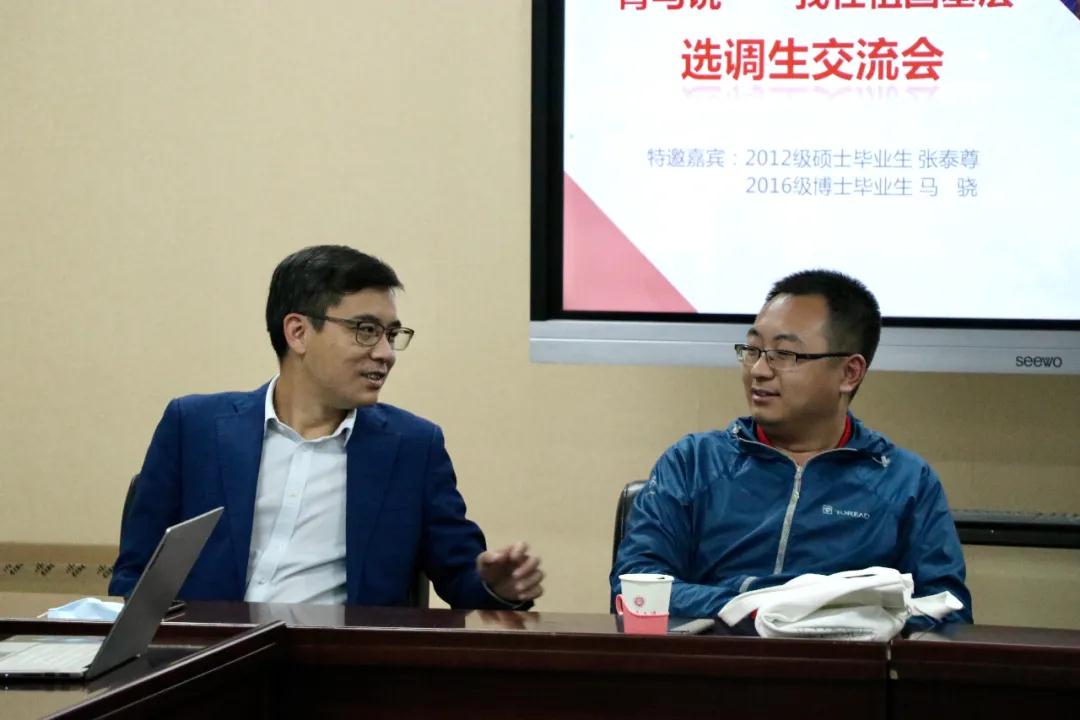 WilliamHill于10月16日晚在理科5号楼301会议室组织召开“青马说——我在祖国基层”选调生交流会,特别邀请到公司两位优秀毕业生,国外马专业2012级硕士张泰尊(现在青海省委统战部工作)、科社专业2016级博士马骁(现在宁夏自治区委政研室工作)和公司在读的各年级同学交流座谈,公司多名同学参加了交流会。会议由罗登科老师主持。