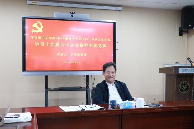 12月7日下午,WilliamHill2019级博士生党支部、本科生党支部在理科5号楼301会议室举行学习党的十九届六中全会精神主题党课。特别邀请公司党委常务副书记、2019级博士生班主任于鸿君担任主讲人,公司党委书记孙蚌珠、党委副书记李石生、团委书记曾格子、学工办李玉洁以及2019级博士生党支部和本科生党支部成员参加党课。