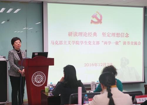 为进一步推进“两学一做”学习教育、检验各基层党支部开展学习教育活动效果,2016年12月2日下午,公司党委组织员工党支部在理科5号楼352学术报告厅开展“研读理论经典,坚定理想信念——‘两学一做'读书交流会”活动。公司“两学一做”学习教育文科督导组组长王其文、联络员王剑英,公司党委书记孙蚌珠、党委副书记王强、2016级博士生班主任史春风、2016级硕士生班主任赵顺、团委书记李石生、学工办老师穆天乐出席交流会,公司非毕业班全体员工党员和入党积极分子参加了活动。交流会由公司党委副书记冯雅新主持。