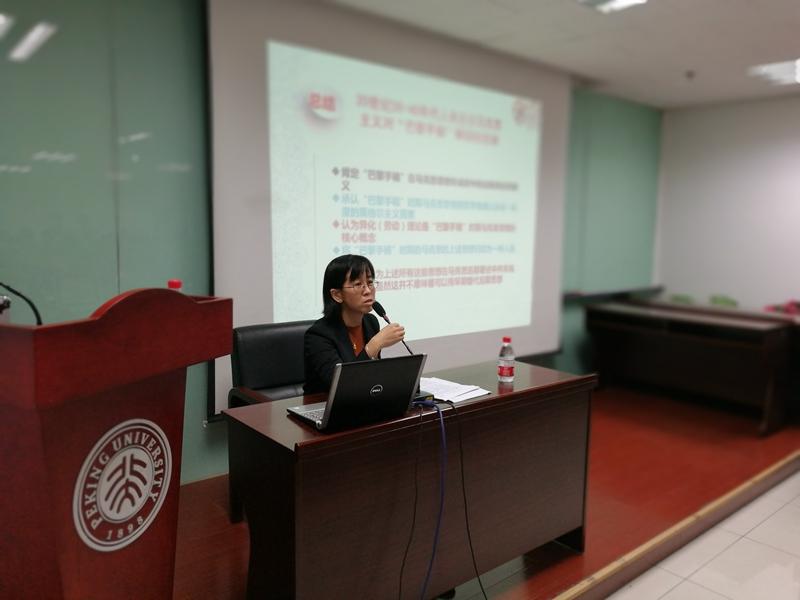 三位主讲人先后发言,结合马克思主义经典著作及马克思主义史上的重大理论、现实问题,作了精彩的学术报告。张秀琴教授主讲的是“《巴黎手稿》与西方马克思主义”。她首先说明了《巴黎手稿》、《巴黎笔记》和《1844年经济学哲学手稿》的关系,并强调指出,如果没有1932年《巴黎手稿》的问世,就不会有我们后来所熟知的“西方马克思主义”。张老师随后回顾和介绍了马尔库塞、卢卡奇、科尔施等西方马克思主义者对《巴黎手稿》的关注和思考。她指出,对于青年马克思与后来的马克思的关系,这些西方学者提出了“基础论”、“结合论”、“阶段论”,但都认为青年马克思与后来的马克思在思想上是连贯的、连续的,而不是断裂的。