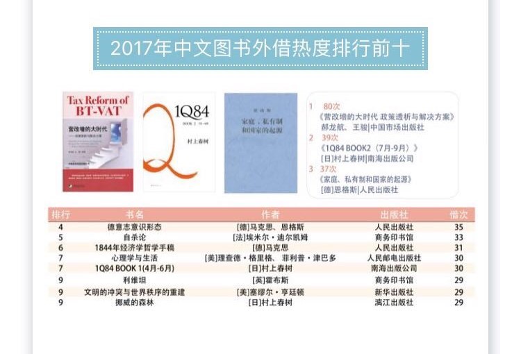 2.马恩著作借阅量占据中文外借排行前十名中的三个