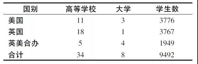 1917年前英美在华设立的高等公司数量以及员工数量如下[1]:
